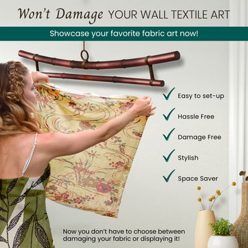 Whether you're displaying a vintage kimono, a handwoven obi, a decorative quilt, or a stunning tapestry rug, our hangers are made to adapt: